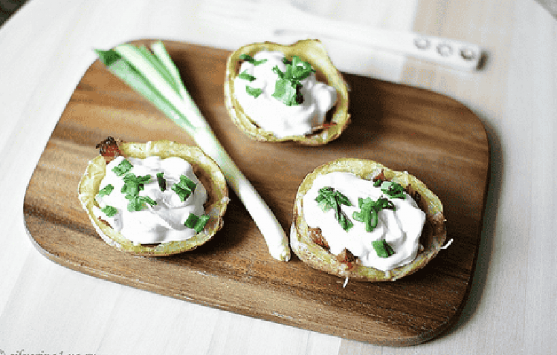 Կարտոֆիլը դուրս բերել ջեռոցից, հանել միջուկը, պատել ձեթով ու կրկն դնել ջեռոց, որ չորանա։