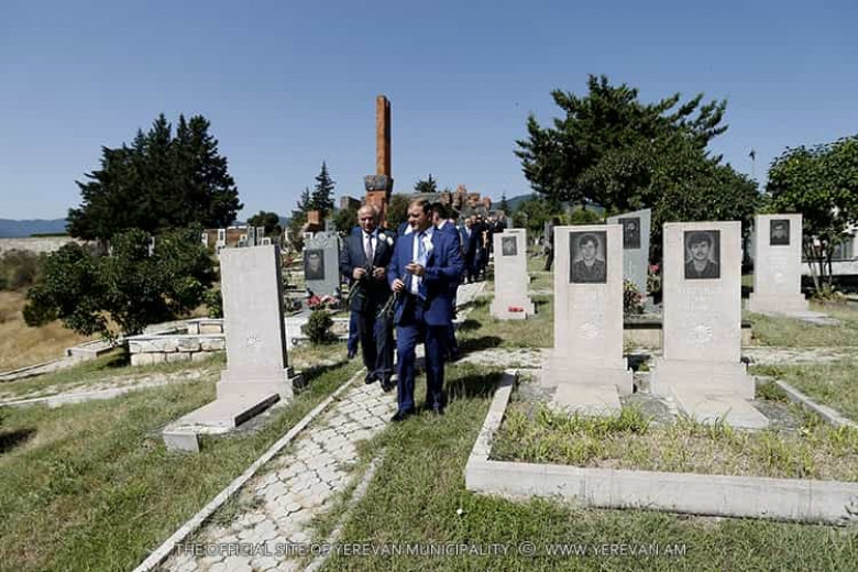 Ստեփանակերտի գործընկերոջ հետ միասին քաղաքապետ Տարոն Մարգարյանը ծաղիկներ է խոնարհել նաև Արցախյան ազատամարտում զոհված հայորդիների շիրիմներին: