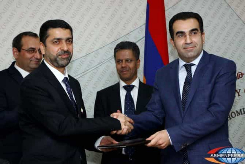 Համաձայնագիրը ստորագրել են ՀՀէկոնոմիկայի նախարարի առաջին տեղակալԳարեգին Մելքոնյանը և Արաբական ՄիացյալԷմիրությունների ֆինանսների նախարարիտեղակալ Յունիս Հաջի ալ-Խուրին: Ստորագրման արարողությանը ներկա էր ՀՀ էկոնոմիկայի նախարար Արծվիկ Մինասյանը: