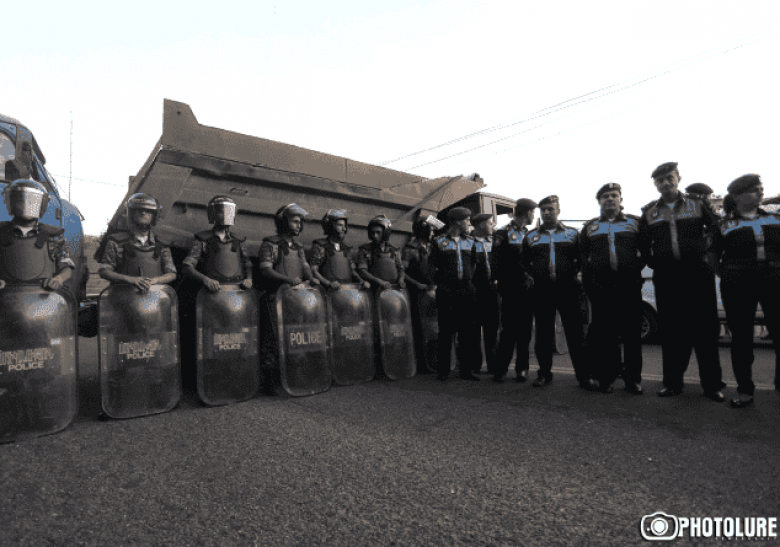 Ոստիկանները ծխանռնակներ են նետել եւ հարձակվել ցուցարարների վրա։ Տարածքում նաեւ հրդեհ է բռնկվել, թերեւս այդտեղից անցնող գազատարի վրա։