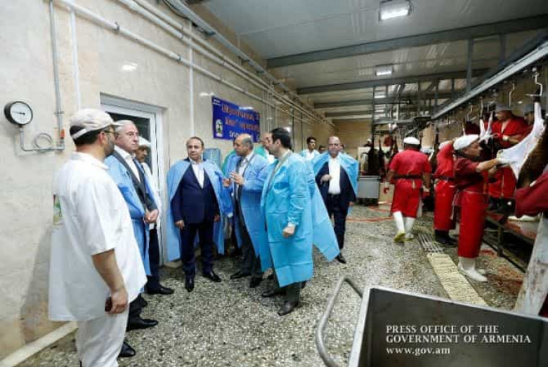 Կառավարության ղեկավարը եղել է նաև Մասիս քաղաքի «Ոսկե կացին» հայ-իրանական սպանդանոցում, որը շահագործման է հանձնվել 2015թ.-ին: Սպանդանոցի կառուցման նպատակով ներդրվել է շուրջ 3 մլն դոլար: Ներկայում սպանդանոցն ունի 1 հոսքագիծ, որն աշխատում է 1 հերթափոխով, (ունի 3 հերթափոխով աշխատելու հնարավորություն): Տեղեկացվել է, որ սպանդանոցում աշխատում է 100 մարդ: 1 հերթափոխում սպանդի են ենթարկվում մինչև 650 գլուխ ոչխարներ և գառներ, որից ստացվում է 10-11 տոննա մսեղիք: Սպանդից գոյացած ենթամթերքները մշակվում են: Ստացված մորթին հանձնվում է Մասիսում գործող հայ-իտալական կազմակերպությանը, որտեղ մշակման է ենթարկվում և արտահանվում Իտալիայի Հանրապետություն: Նշվել է, որ 2015-ից մինչ օրս սպանդանոցում սպանդի է ենթարկվել շուրջ 50 հազար գլուխ ոչխար և գառ, որից սույն թվականի հունվար-հուլիս ամիսներին` 30 հազար գլուխ, իսկ մսեղիքն արտահանվել է Իրանի Իսլամական Հանրապետություն: Սպանդանոցն ունի մսեղիքի փաթեթավորման արտադրամաս, որտեղ այն սառեցվում և պաղեցվում է: Ներկայում պաղեցված մսեղիքն արտահանվում է ԻԻՀ, սակայն պահանջարկ կա նաև Արաբական Էմիրություններից և նախատեսվում է աշխատողների քանակը հասնել 250-ի: Վարչապետը կարևորել է Հայաստանում ժամանակակից սպանդանոցների առկայությունը՝ սննդի անվտանգության ապահովման և անասնապահության զարգացման խթանման առումով: