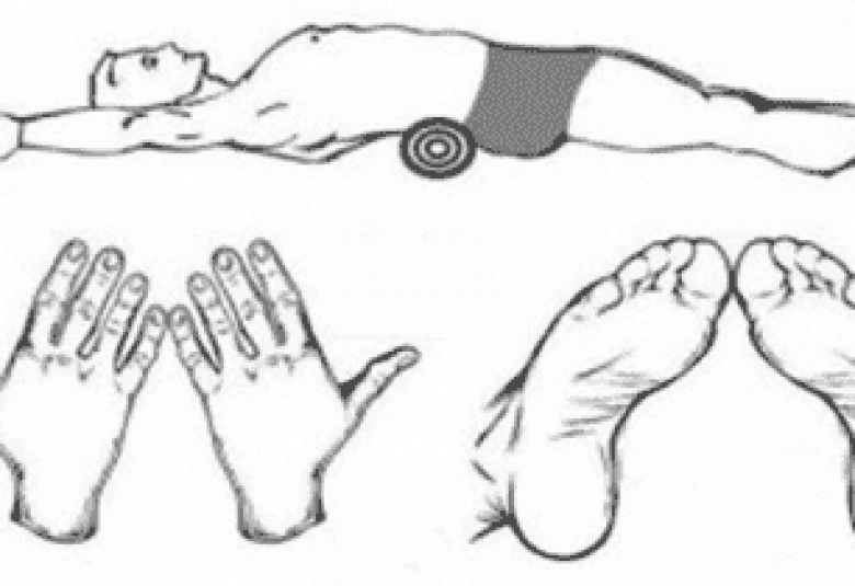 Այս վիճակով օրական 3 անգամ պառկեք հարթ մակերևույթի վրա` 5 րոպեով: Այդ ընթացքում այնպես արեք, որպեսզի ոտքերի բութ մատներն ու ձեռքերի ճկույթներն իրար կպած լինեն: Անհրաժեշտ է, որպեսզի ձեռքերն ափերի հատվածով դրված լինեն հատակին: