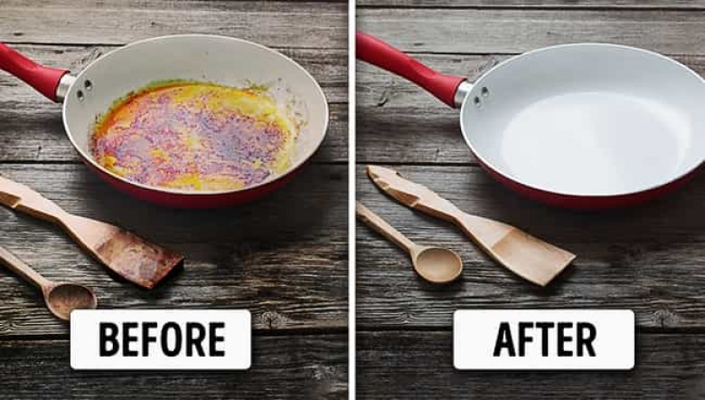 Կերամիկական թավան կարող եք մաքրել այսպես. Մի մեծ տարրայի մեջ ջուր լցրեք այնքան, որ թավան ամբողջովին ծածկվի, ապա մի քանի ճաշի գդալ մաքրող միջոց և սոդա ավելացրեք: Ապա տարրան թավայի հետ միասին դրեք գազօջախի վրա և կես ժամ եփեք: Սպասեք մինչև հեղուկի հովանալը, հետո վերցրեք թավան, ծորակի տակ լվացեք և զգուշությամբ մաքրեք այն: