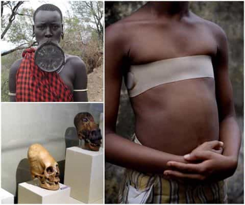 Այս ավանդույթը տարածված է շատ աֆրիկյան ցեղերում։ Կանանց ստոին շրթունքը ծակում են և ծակի մեջ քար են դնում։ Ժամանակի ընթացքում քարերը մեծացնում են։ Ինչքան ավելի մեծ լինի քարը, այնքան ավելի ցանկալի կլինի կինը։