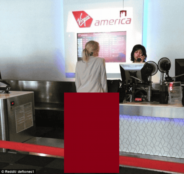 Բրիտանական Daily mail պարբերականում հայտնվել է լուսանկար, թե ինչպես է կինը Վիրջինիայի օդանավակայանում նստեցման կտրոն ստանալու եկել միայն կիսավարտիքով։