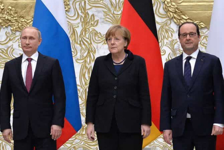 Վլադիմիր Պուտինը, Անգելա Մերկելը եւ Ֆրանսուա Օլանդը նաեւ քննարկել են Մինսկի գործընթացի հեռանկարները՝ անվտանգության բնագավառում քաղաքական քայլերի եւ միջոցառումների համաժամանականացման հիման վրա: