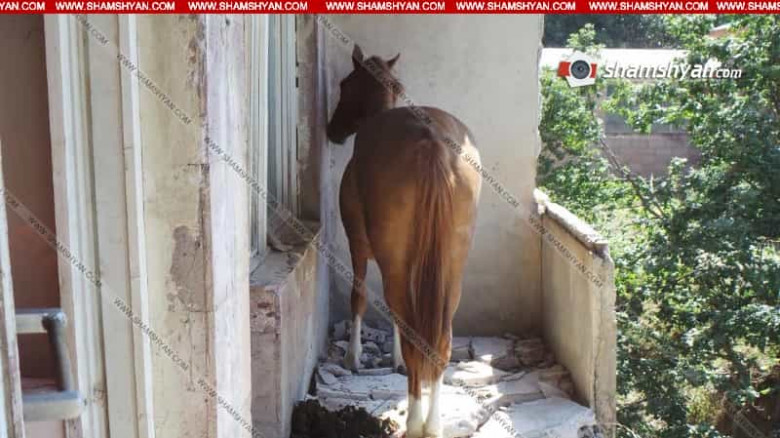 Արտակարգ և զավեշտալի դեպք Կոտայքի մարզում. 3 տարեկան ձին հայտնվել է հանգստյան տան 5-րդ հարկի պատշգամբում