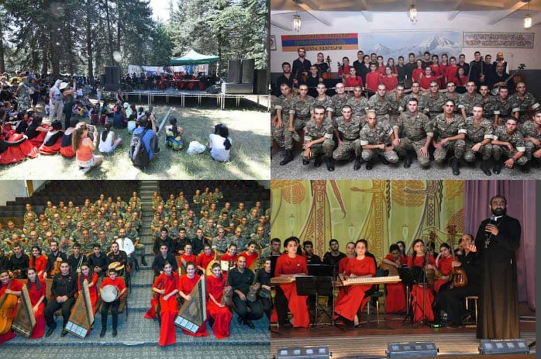 Համերգից առաջ ողջույնի խոսքով հանդես եկավ տեր Արամ քահանա Միրզոյանը. - Ամեն վայրկյան մտածում ենք հայ զինվորի մասին: Հասկանում ենք, որ ըստ էության, մենք համազգային բանակ ենք, զինվոր ենք, գուցե դատապարտված ենք դրան, գուցե մեր ուժը դրա մեջ է… Անպարտելի է այն ազգը, որը միասնական է ոտքի կանգնում… Երեկ զորամասի համերգից հետո ինձ է զանգահարել զորամասի հրամանատար փոխգնդապետ Հարություն Խառատյանը և իր հիացմունքի, զորքի ոգևորվածության ու նվագախմբով հիացած լինելու մասին է խոսել…
