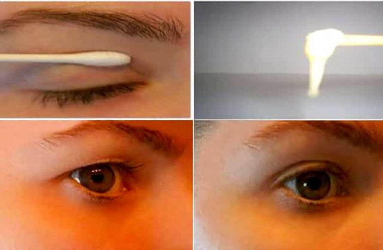 Բամբակը թրջեք սպիտակուցի մեջ, աչքը փակեք և սպիտակուցը զգուշորեն քսեք կոպերին: