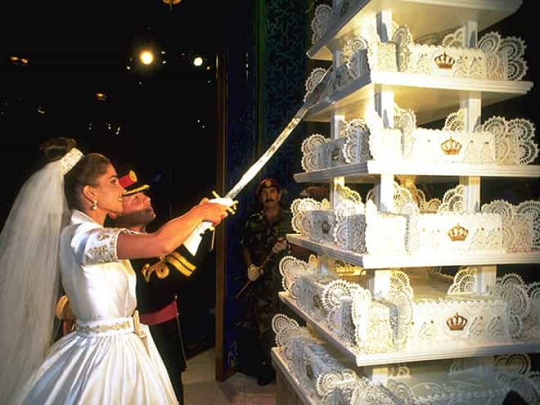 4. Չորրորդ տեղում է հայտնվել Հորդանանի Ռանիա թագուհու և նրա ամուսնու՝ Ալբերտ արքայի համար պատրաստված տորթը: Քառակուսի տեսք ունեցող և թագերով զարդարված տորթն այնքան մեծ էր, որ նորապսակներն այն կտրել են իսկական թրով: