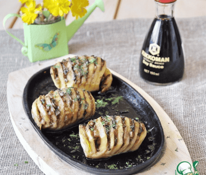 Կարտոֆիլը մաքրել, կտրվածքներ անել, մեջը լցնել սնկի միջուկը։