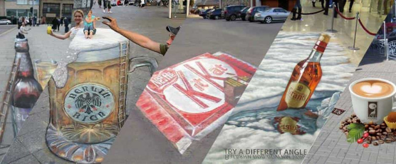 Այսօր արդեն ասֆալտի վրա արված 3D պատկերները ծառայում են նաև որպես գովազդ։ Այնպիսի հայտնի ընկերություններ, ինչպիսիք են IKEA-ն, Nike-ը, DHL-ը, Citroen-ը, Sony-ն, Nokia-ն, Hitachi-ն և այլն, ավելի ու ավելի են ուշադրություն հատկացնում գովազի այս արդյունավետ տեսակին։