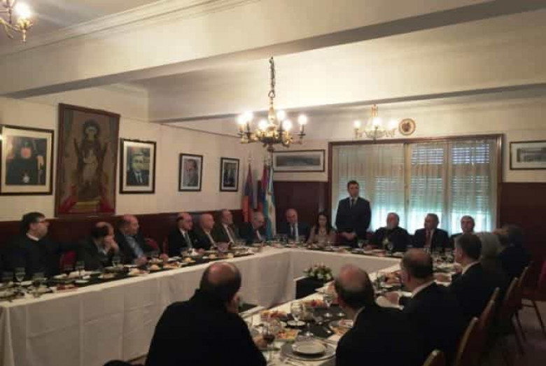 ուրախ եմ եւ հպարտ գտնվելու համար Արգենտինայի Սուրբ Գրիգոր Լուսավորիչ եկեղեցու առաջնորդարանում եւ հանդիպելու հայ համայնքի ներկայացուցիչների հետ: Արգենտինայի եւ Հայաստանի միջեւ բարեկամական հարաբերությունների ձեւավորման հիմքում նախ եւ առաջ դուք եք, սիրելի արգենտինահայեր: Դուք բազմիցս եք ապացուցել, որ ապրելով օվկիանոսից այն կողմ, լինելով Արգենտինայի օրինապահ քաղաքացիներ՝ մնացել եք հայ եւ այստեղ ձեւավորել մի փոքր Հայաստան: Դուք հայտնվել եք հայրենիքից հազարավոր կիլոմետրեր հեռու, քանի որ մեկ դար առաջ Թուրքիայի հանցագործ իշխանություները որոշեցին աշխարհում մեկ հայ թողնել եւ այն էլ թանգարանում՝ իրագործելով 20-րդ դարի առաջին ցեղասպանությունը: Սակայն հայերիս՝ ազատ եւ անկախ հայրենիքում ապրելու ցանկությունն այնքան հզոր գտնվեց, որ անգամ Ցեղասպանությունը չկարողացավ չեզոքացնել անկախության ձգտումը: Մեծ եղեռնից ընդամենը 3 տարի անց Սարդարապատի, Ղարաքիլիսայի եւ Բաշ Ապարանի մայիսյան հերոսամարտերում հայերը պարտության մատնեցին թուրքերին՝ հող նախապատրաստելով հայկական պետականության վերականգնման եւ մեր ժողովրդի ազգային վերածննդի համար: