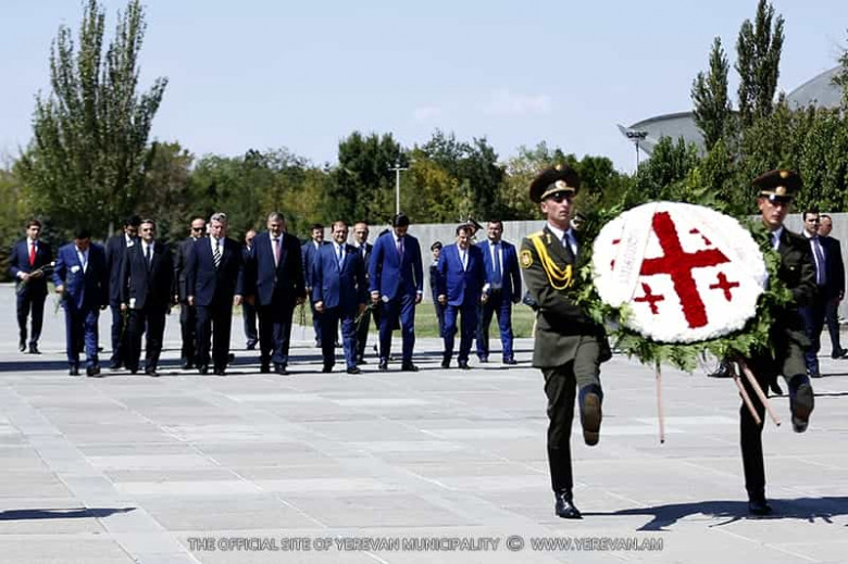 ՀԱՍԱՐԱԿՈՒԹՅՈՒՆՊաշտոնական այցով Հայաստանի Հանրապետություն ժամանած Վրաստանի վարչապետ Գիորգի Կվիրիկաշվիլին Երևանի քաղաքապետ Տարոն Մարգարյանի և ՀՀ փոխվարչապետ Վաչե Գաբրիելյանի ուղեկցությամբ այցելել է Ծիծեռնակաբերդի հուշահամալիր, ծաղկեպսակ դրել Հայոց ցեղասպանության զոհերի հուշարձանին և ծաղիկներ խոնարհել Հայոց ցեղասպանության սուրբ նահատակների հիշատակը հավերժացնող անմար կրակի մոտ: