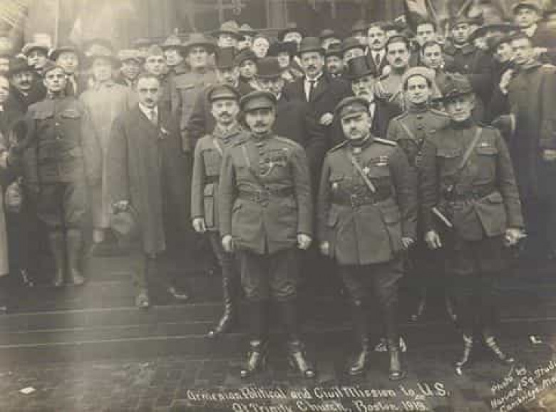 ՀԱՅԱՍՏԱՆԻ ՀԱՆՐԱՊԵՏՈՒԹՅԱՆ պաշտոնական պատվիրակությունը 1919 թ. աշնանը Փարիզից մեկնել էր ԱՄՆ-ը՝ ազատ, անկախ և միացյալ Հայաստանի առաջին ղեկավար Հովհաննես Մաթևոսի Քաջազնունու գլխավորությամբ։ ՀՅԴ պատմության թանգարանի արխիվում պահվող այս բացառիկ լուսանկարի կենտրոնում կանգնած են պատվիրակության զինվորական առաքելության հրամանատար Հայկ Բոնապարտյանը, զորավար Անդրանիկ Օզանյանը, Մեծ Բրիտանիայում ՀՀ դեսպան, զորավար Հակոբ Բագրատունին, պատվիրակության զինվորական առաքելության փոխհրամանատար Միքայել Տեր-Պողոսյանը, նրանց հետևում են կանգնած ՀՀ ֆինանսների երկրորդ նախարար Արտաշես Էնֆիաջյանը, պրոֆեսոր Աբրահամ Տեր-Հակոբյանը, ՀՀ առաջին վարչապետ Հովհաննես Քաջազնունին, որի հետևում էլ կանգնած են ՀՀ խորհրդարանի պատգամավոր, ԱՄՆ-ում ՀՀ առաջին դեսպան Գարեգին Փաստրմաջյանը (Արմեն Գարո), ՀՀ առաջին ու երկրորդ վարչապետներ Հովհաննես Քաջազնունու և Ալեքսանդր Խատիսյանի անձնական թիկնապահ ու քարտուղար, Հայոց բանակի սպա Սուրեն Մելիքյանը (ՀՀ ֆինանսների փոխնախարար Համբարձում Մելիքյանի որդին) և գյուղատնտես Արտեմ (Հարություն) Փիրալյանը։ Ազատագրված ու անկախացած Հայրենիքից առաջին անգամ ԱՄՆ-ը ժամանած բարձրաստիճան հյուրերին էլ շրջապատել են խանդավառված ամերիկահայերը։