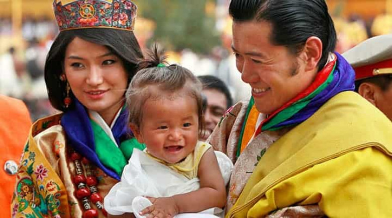 Թագուհուն ողջունելու ժամանակ Բութանի թագավորը գրկել է փոքրիկ երեխայի: