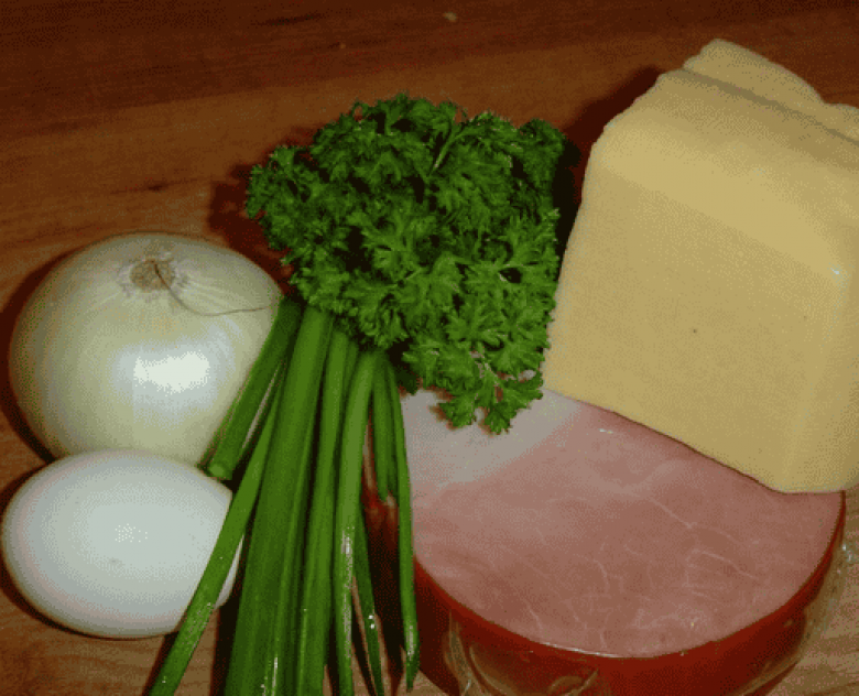 Պանիրն ու նախապես տապակված խոզապուխտը ավելացնել տապակած սոխին ու կանաչիներին։