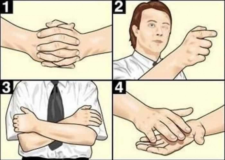 ԼԱՅՖ1.Փակեք ձեռքերը կողպեքի նման (ինչպես պատկերված է 1 նկարում): Եթե վերևում ձախ ձեռքի բթամատն է, ապա թղթի վրա գրեք «Ձ», հակառակ դեպքում` «Ա»: