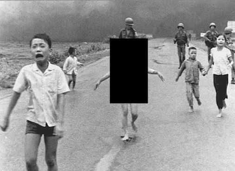 Լուսանկարի մեջ անմեղ երեխաներ են, ովքեր տուժել են հարավվիետնամական ուժերի կողմից նետված ռումբի պայթյունից: Լուսանկարի կենտրոնում աղջիկն է՝ մարմնի վրա լուրջ այրվածքների հետքերով: Աղջիկն ամբողջովին մերկ է, որովհետև հանել է իր վրայի այրվող հագուստը: Ֆեյսբուքը գրառումը ջնջել է այն պատճառաբանությամբ, որ լուսանկարի մեջ պատկերված երեխան բոլորովին մերկ է: Սակայն այստեղ հաշվի չի առնվել այն հանգամանքը, որ լուսանկարն իրենից պատմական արժեք է ներկայացնում և գրաքննության ենթակա չէ: Ի նշան բողոքի՝ Էռնա Սուլբերգն էլ մի ֆոտոալբոմ է ներբեռնել իր ՖԲ էջ, որի բոլոր պատմական լուսանկարները ՖԲ օրենքների համաձայն խմբագրված են: