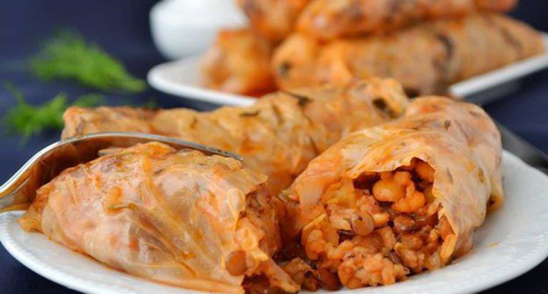 - Տերևների վրա լցնել միջուկն ու փաթաթել: Դնել կաթսայի մեջ, տոմատի մնացուկը խառնել 3 բաժակ ջրով և լցնել կաթսայի մեջ: