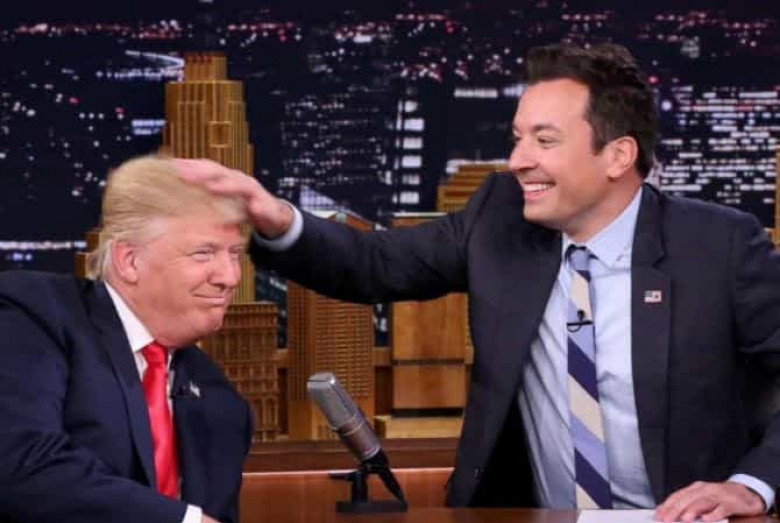Ծրագրի ընթացքում արծարծվել են նաեւ լուրջ հարցեր, ներառյալ քաղաքական գործչի ընտրարշավը: Բայց վերջում հաղորդավար Ջիմի Ֆալոնը Թրամփին հարցրել Է, թե կարելի Է արդյոք մի հիմար բան անել, քանի դեռ նա ԱՄՆ-ի նախագահ չի դարձել: Ճշտող հարցին Ֆալոնն ասել Է, թե ցանկանում Է գզգզել նրա մազերը: Թրամփը նախ շփոթվել Է, բայց, մի քանի վայրկյան մտածելով, համաձայնել Է: