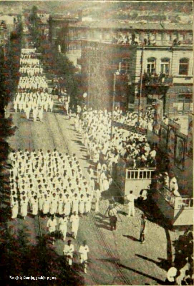 Մարզական շքերթ Երևանի Աբովյան փողոցում. 1934 թվական (լուսանկար)