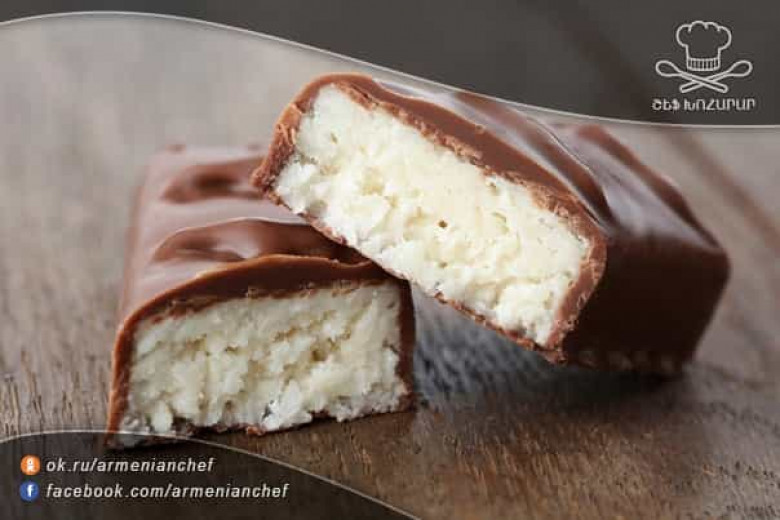 - Ընկղմել շոկոլադի մեջ արդեն սառչած կոկոսի կոնֆետները: