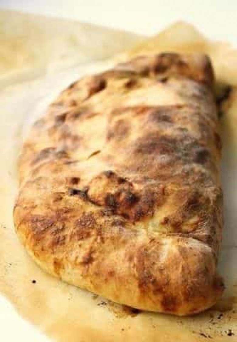 Միջուկի համար խառնեք պանրի երկու տեսակներն ու հավկիթը, մինչև ստացվի միասեռ զանգված: Ջեռոցը տաքացրեք մինչև 220 աստիճան: Խմորն ու միջուկը բաժանեք 6 հավասար մասերի: Ձեռքերով տարածեք խմորը և 20 սմ տրամագծով բլիթ պատրաստեք: Տեղադրեք միջուկը և ամուր փակեք բլիթը (կալցոնեի տեսքով): Թխեք 10-15 րոպե: Մատուցեք տաք վիճակում: