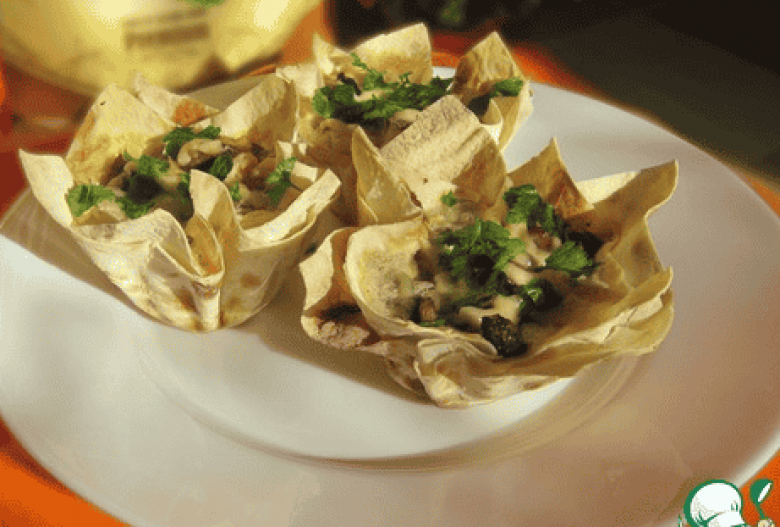 Լավաշները քառակուսաձև կտրատել, տեղավորել զամբյուղի ամանիկների մեջ։