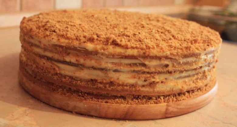 Կրեմը քսել խմորի շերտերի վրա և դնել սառնարան 5 ժամ:
