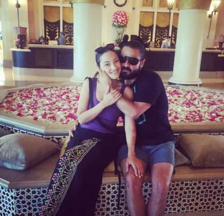 Լուսանկարն արված է ամուսինների մեղրամսի ժամանակ, որը Արմանն ու Վիկան անցկացրել են Շրի Լանկայում եւ Դուբայում։