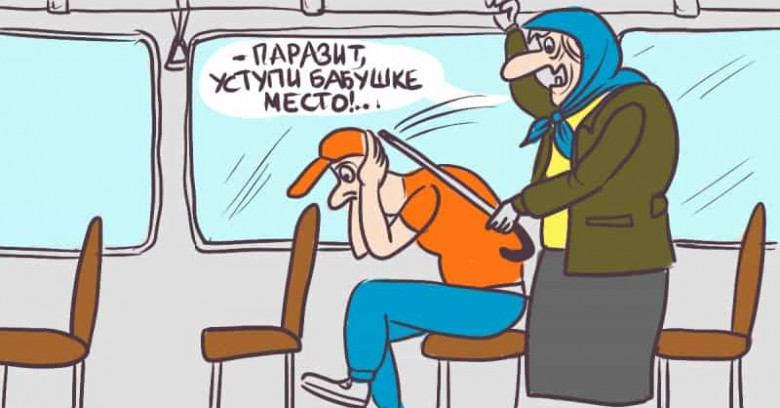 PHOTOКаждого из нас с детства учили тому, что в общественном транспорте нужно непременно уступать место старшим. Этим жестом мы якобы показываем уважение к дедушкам и бабушкам и благодарим их за всё, что они сделали для младшего поколения. Они уже старенькие и заслужили отдых, тогда как молодежь в состоянии полчасика постоять.