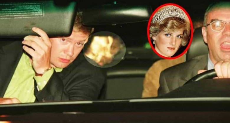 Принцесса Диана, отвернувшись, смотрит в заднее стекло, глядя, куда двигаются папарацци. Одна из машин с репортерами обогнала ее, папарацци снимают спереди. Сейчас обе машины въедут в туннель, и через минуту случится смертельная авария.