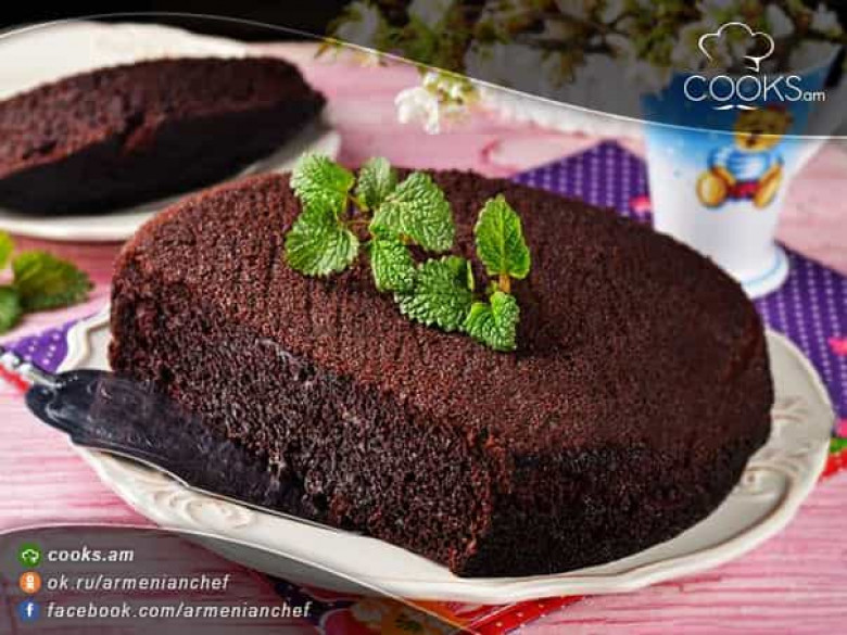 - Բիսկվիթը լցնում ենք 22 սմ տրամագիծ ունեցող յուղաթղթապատ ձևամանի մեջ և թխում նախօրոք 180 աստիճան տաքացրած ջեռոցում 50 րոպե:
