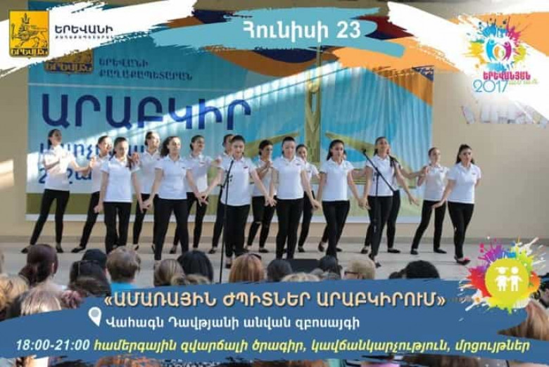 Վաղը՝ հունիսի 23-ին, #Երևանյանամառ2017-ի շրջանակում Արաբկիր վարչական շրջանի Վահագն Դավթյանի անվան զբոսայգում ժամը 18:00-21:00-ը կանցկացվի «Ամառային ժպիտներ Արաբկիրում» խորագրով մանկական համերգային ծրագիր: