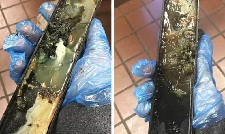 Затем он выложил фото собственно жироотстойника, а также других грязных автоматов и полов.
