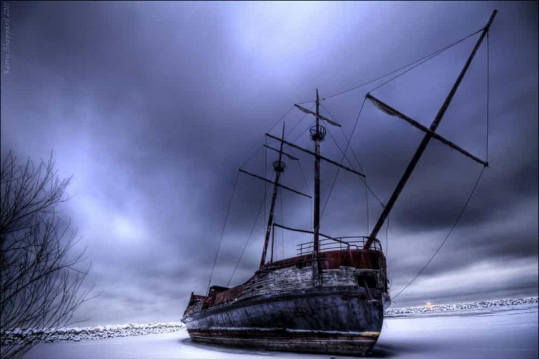 This eerie ghost ship is a Brazilian yacht shipwrecked in the Ardley Bay. Brazilians were shooting a documentary but strong winds and a raging sea forced them to abandon the ship. Since then, this yacht rests underwater.