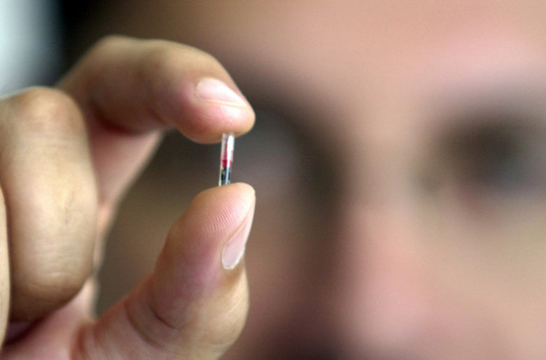 Չիպերը, որոնք արտադրվում են BioHax International ընկերության կողմից, ներարկվում են ձեռքի բութ մատի մաշկի տակ: