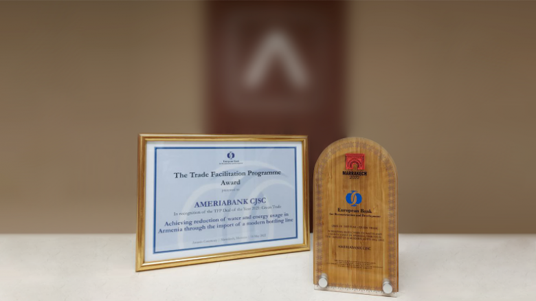 ECONOMICSAmeriabank’s project on saving water and energy resources, implemented jointly with Banca Popolare di Sondrio (Italy), has been recognized as the Deal of the Year 2021: Green Trade by The European Bank for Reconstruction and Development (EBRD). The announcement was made during the EBRD’s 2022 Annual Meeting and Business Forum held in Marrakech, Moroccowhere in a separate award ceremony a special tribute was made to banks most active in Green Trade Facilitation Program (TFP).