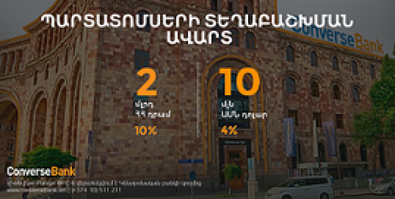 SOCIETYConverse Bank has completed the distribution of nominal coupon bonds totaling 2 billion AMD and 10 million USD ahead of schedule.