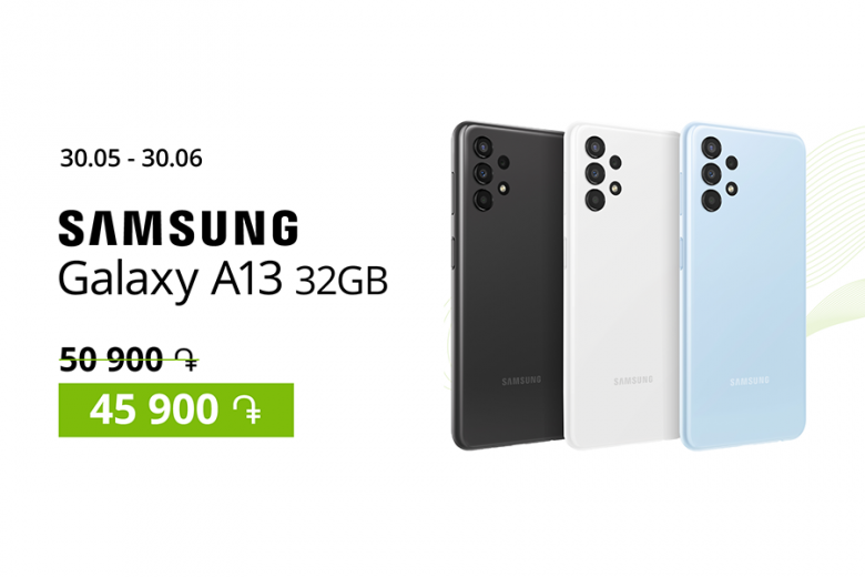 SOCIETYUntil June 30 Samsung Galaxy A13 32 GB smartphone can now be acquired from Ucom sales and service centers as well as from Ucom’s online shop at just 45900 drams instead of the previous 50900. It is available in light blue and black colors.
