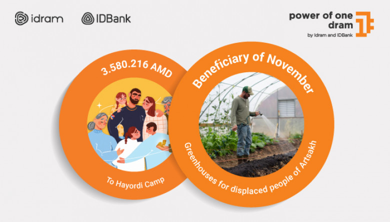 The next program of "The power of one dram" is also dedicated to our compatriots forcibly displaced from Artsakh. During November, the accumulated amount from all payments made through the Idram and IDBank platforms will be transferred to the construction of greenhouses in Syunik for displaced Artsakh citizens. As a result of the recent incidents in Artsakh, more than 100,000 Artsakh residents were forced to leave Artsakh.