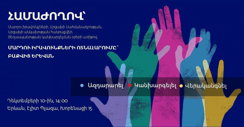 Ժամը 14:00-ից համեցեք Էլիտ Պլազա մասնակցելու Արցախի Սահմանադրության, մարդու իրավունքների պաշտպանության եւ ցեղասպանության կանխարգելման միջազգային օրվա կապակցությամբ կազմակերպված համաժողովին:
