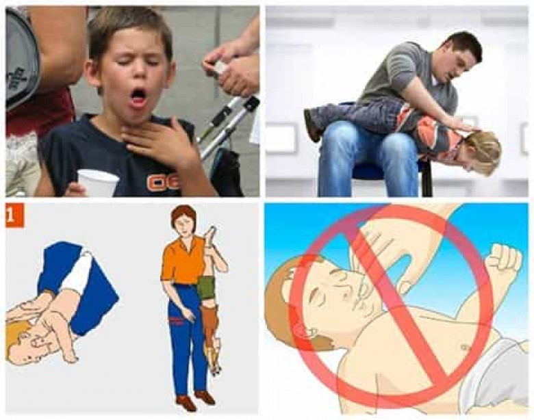 1.Դեպի վեր բարձրացրու երեխայի ձեռքերը: Այդպես շնչուղիները կլայնանան ու երեխան մի փոքր օդ կշնչի և կկարողանա արտաշնչելու ժամանակ հետ հրել իրեն խեղդող առարկան: