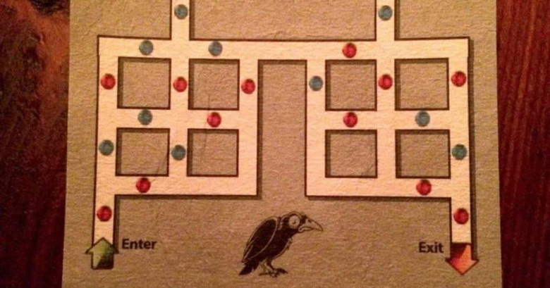 PHOTOՀետաքրքիր հանելուկ ուրախ ընկերախմբի համար: Առաջին հայացքից ամեն ինչ հեշտ է թվում, բայց մի նրբություն կա: Քանի որ հենց այնպես չէ հանելուկը կոչվում «հարբած ագռավ»: Փորձեք լուծել այն, և կհասկանաք, թե ինչու: Կանոնները պարզ են. Դուք պետք է մտնեք լաբիրինթ և կարողանաք հասնել ելքին: Գնդիկների հետևյալ հերթականությամբ պետք է անցնեք. «կարմիր-կապույտ-կարմիր-կապույտ»: Եվ այդպես մինչև վերջ: