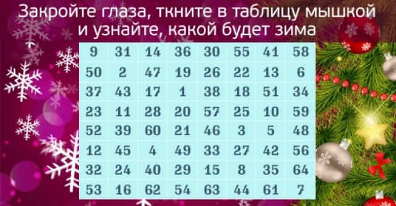 Закройте глаза, ткните мышкой в таблицу и прочтите ваше новогоднее предсказание