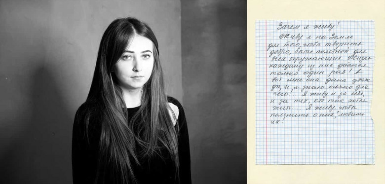 Я сняла бывших заложниц Беслана спустя 12 лет после теракта и попросила написать от руки сочинение на тему «Почему я должна жить». В проекте поучаствовало 33 героини, идея на поверхности — она в продолжении жизни после самой тяжелой жизненной ситуации.