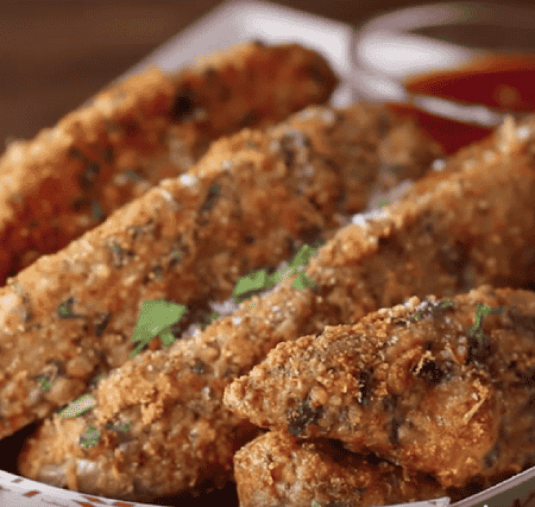 Մեկ այլ ամանի մեջ միախառնել մնացած բոլոր բաղադրիչները, կարտոֆիլը թաթախել ձվի, հետո պանրով զանգվածի մեջ, դնել ջեռոց: