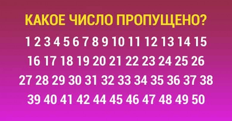 Тест на внимательность: у тебя есть ровно 5 секунд, чтобы найти пропущенное число