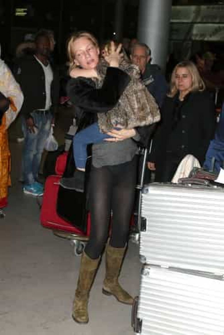Ума Турман отправилась в полет в колготках и свитере, забыв про юбку (Фото)